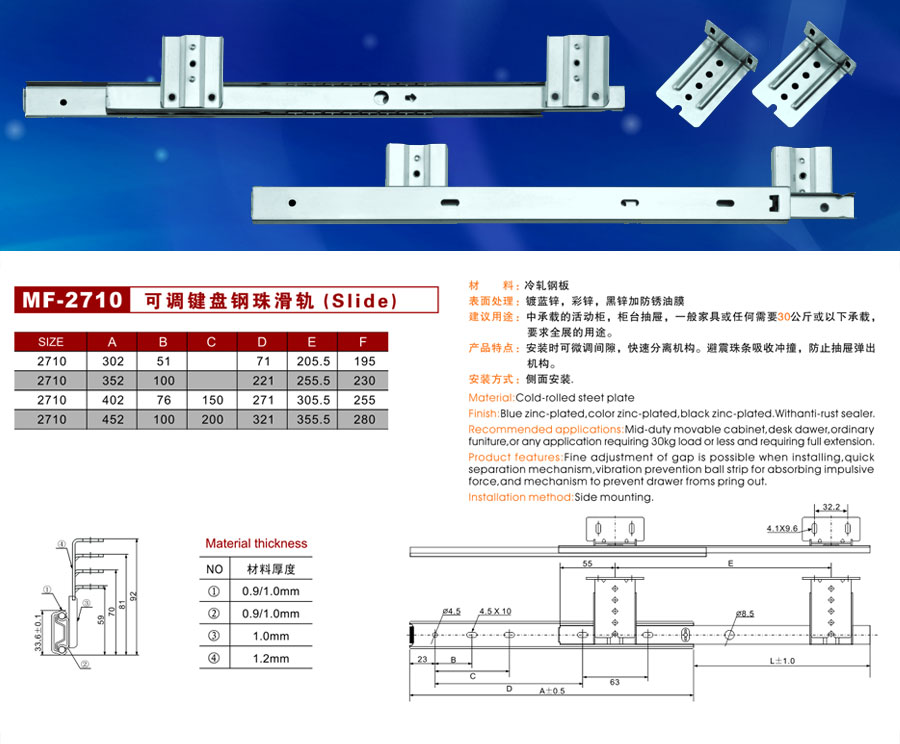 MF-2710可調(diào)鍵盤鋼珠滑軌